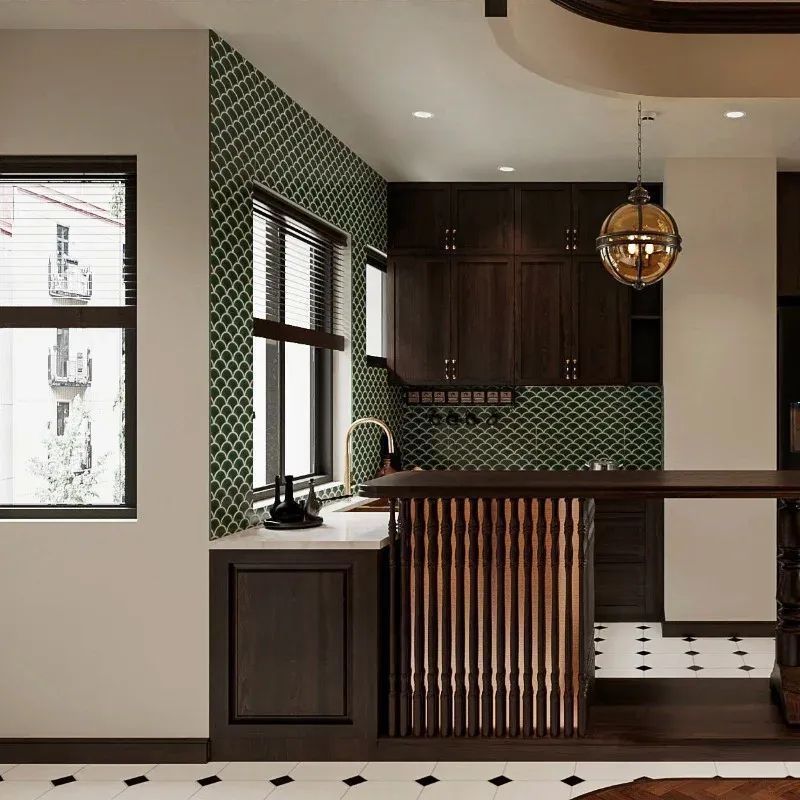 小花瓷砖的铺设为整个空间增添了一抹浪漫的色彩。每当阳光透过窗户洒进来,厨房便充满了温馨而高级的气息。